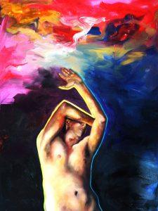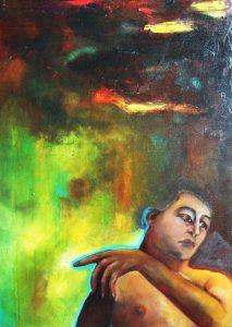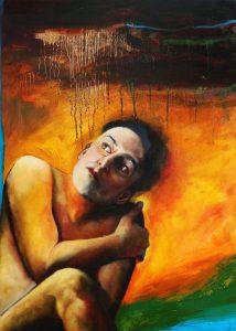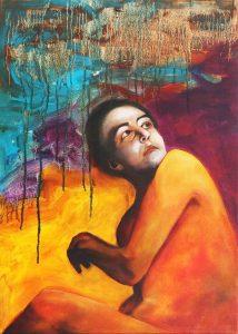 Nel sogno dei miei paesaggi Where I recount the images and colours I take from some of my dreams in this strange period of isolation and domestic confinement. Starting from the position of a body, the memory of an image or a posture or something I have dreamt, I begin to recreate it in the canvas, where I portray myself and look for ways to communicate that idea. The backgrounds are fiery, mellow colours, with weights, textures, stains of dreamscapes that introduce me into a world of my own and the body image ends up small in the corner and all this matter descends on it and crushes it or accompanies it depending on the day. The idea of telling these small dreams or small landscapes in which I am immersed is what helps me to bring out all the instability of the four walls, a slow but important process, a story within a story, a small autobiography of a year of reflection on what painting is and the relationship with my body. Nel sogno dei miei paesaggi I / oil on canvas 70×90 cm 2020 Nel sogno dei miei paesaggi II /oil on canvas 70×90 cm 2020 Nel sogno dei miei paesaggi III /oil on canvas 50×70 cm 2020 Nel sogno dei miei paesaggi IV /oil on canvas 50×70 cm 2020 Nel sogno dei miei paesaggi V /oil on canvas 50x70cm 2020 Nel sogno dei miei paesaggi VI / Oil on canvas 100×120 cm 2020 Nel sogno dei miei paesaggi VII /olio su tela 50×70 cm 2020 Nel sogno dei miei paesaggi VIII / oil on canvas 100×120 cm 2020 Nel sogno dei miei paesaggi IX / oil on canvas 90×120 cm 2020 Nel sogno dei miei paesaggi X / oil on canvas 110×95 cm 2020 Nel sogno dei miei paesaggi XI /oil on canvas 50x70cm 2021 Nel sogno dei miei paesaggi XII /oil on canvas 50x70cm 2021 Nel sogno dei miei paesaggi XIII /oil on canvas 100x150cm 2021 Nel sogno dei miei paesaggi XIV /oil on canvas 75x90cm 2021